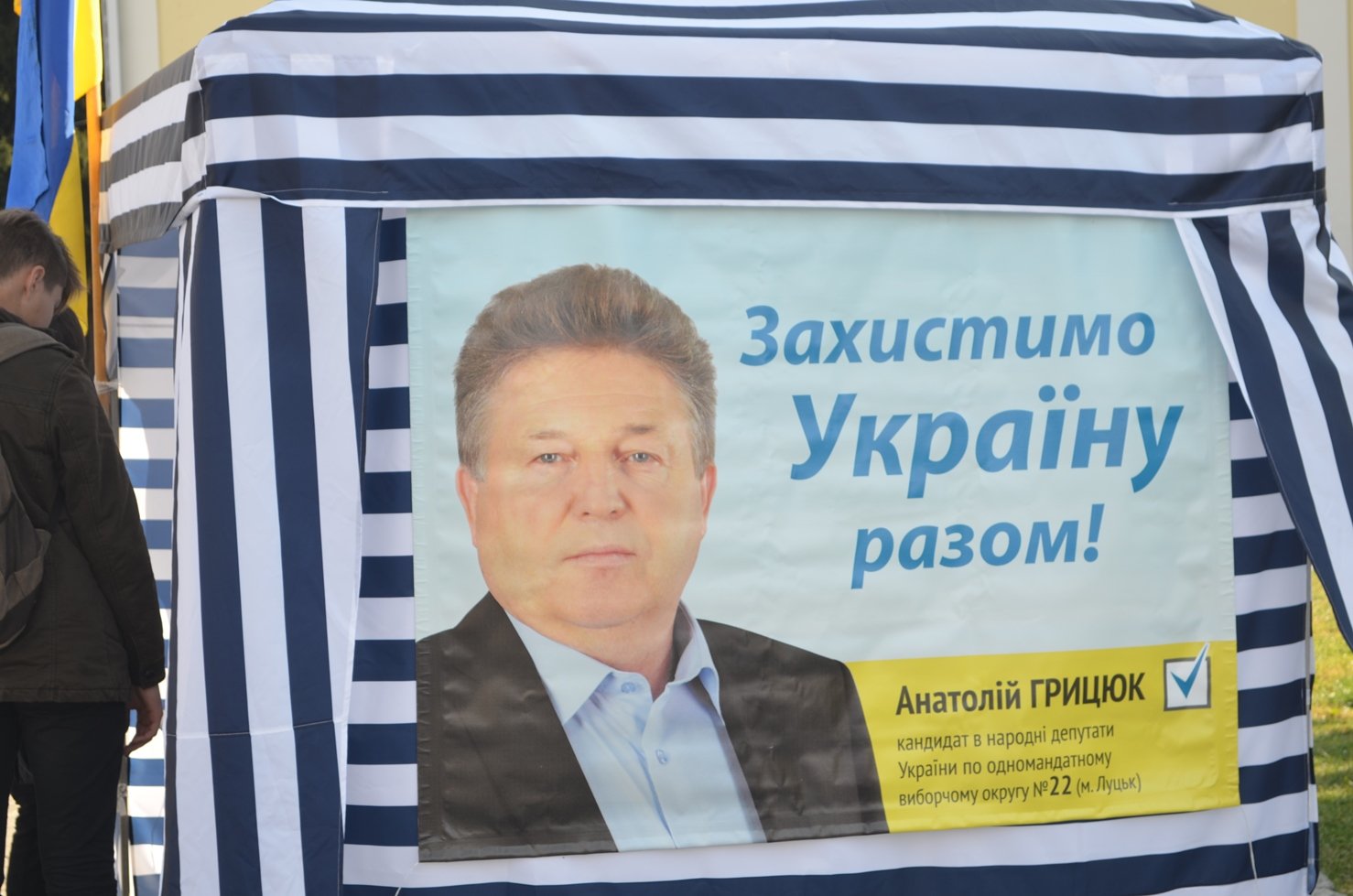 Порушують цю норму і кандидати-мажоритарники в 22 окрузі. Так, на агітаційних наметах кандидатів в депутати Ігоря Лапіна та Анатолія Грицюка розміщені банери з їх зображеннями та іменами, але даних про те, хто і на чиє замовлення їх виготовляв немає.