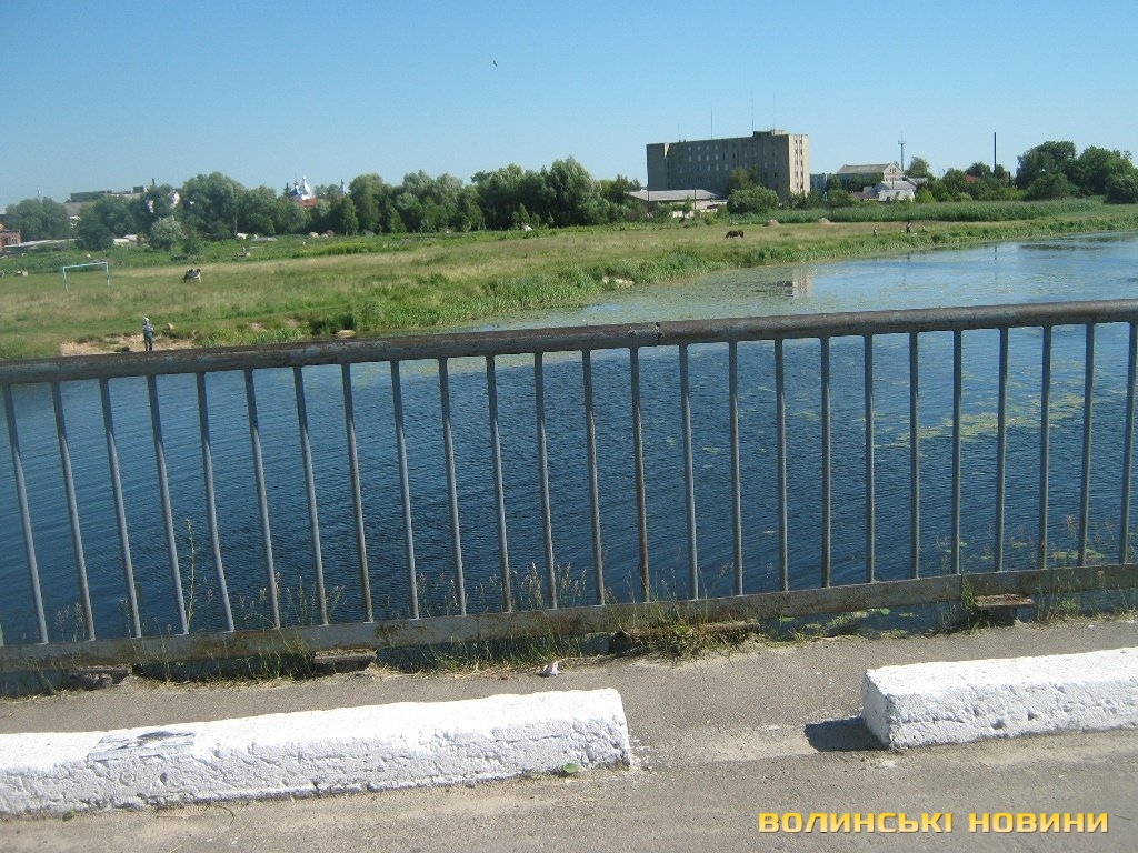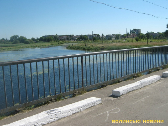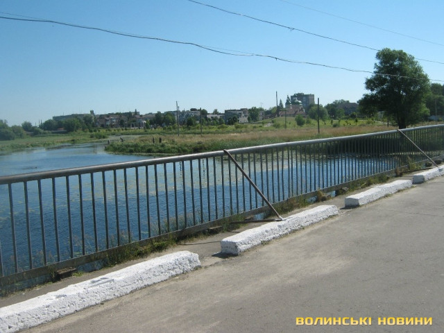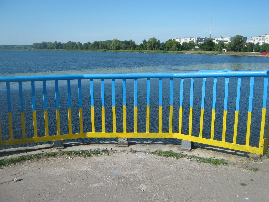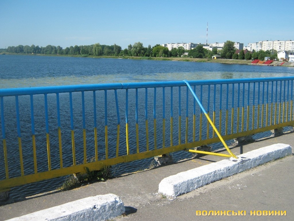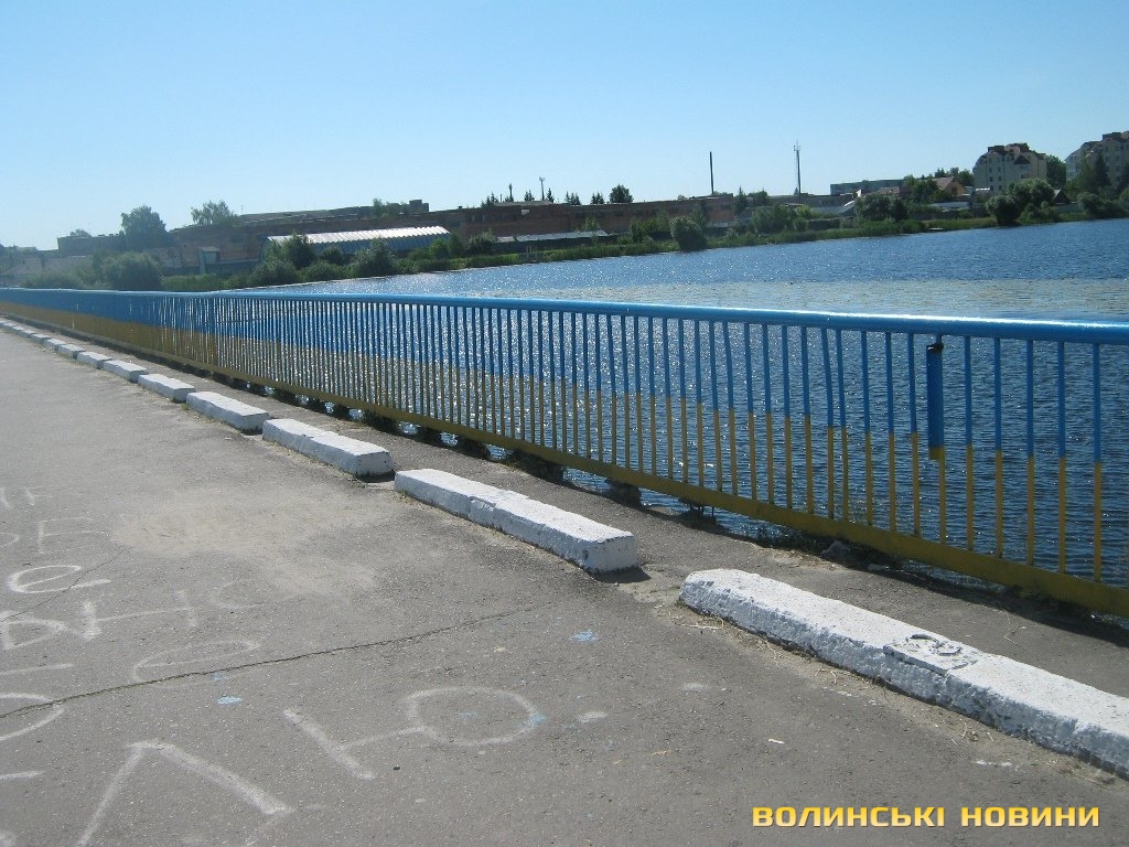 Права частина ковельського пішохідного мосту, що сполучає два береги річки Турії, теж стала синьо-жовтою.