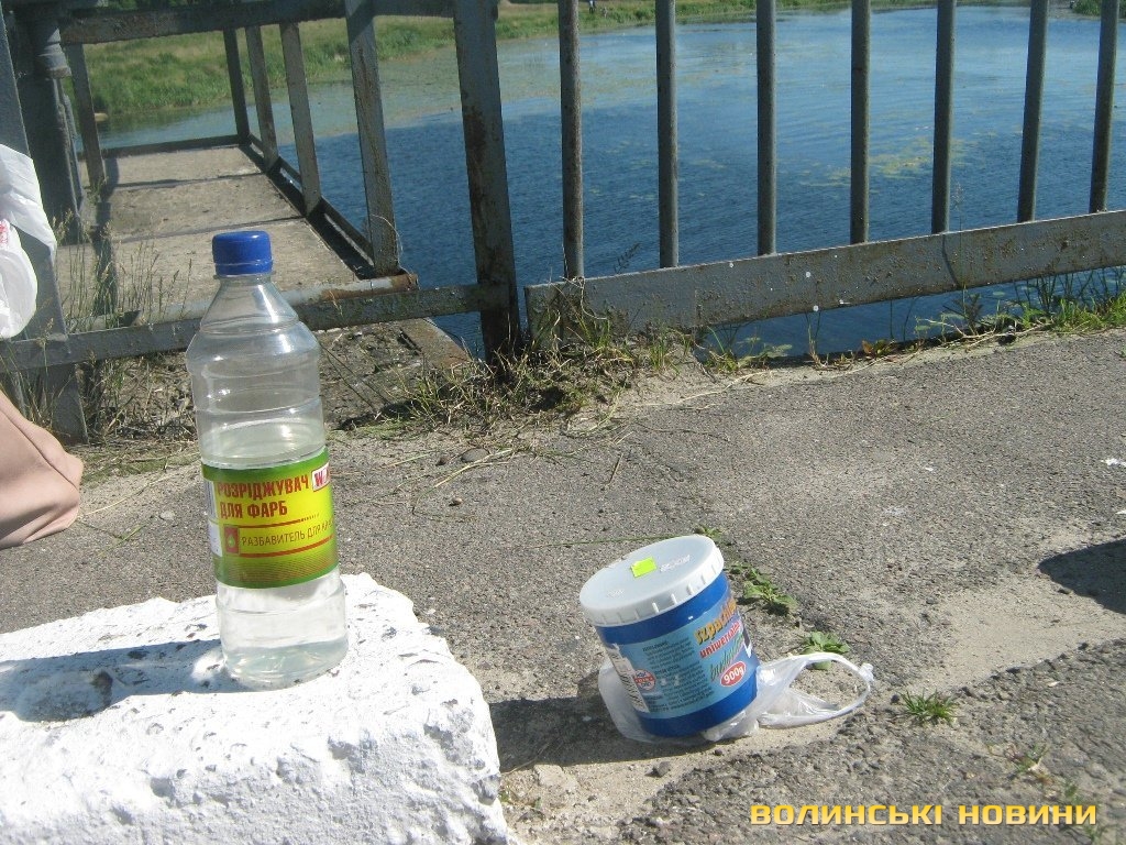 Учасники акції швиденько взялися розбавляти фарбу, аби краще лягала на залізну поверхню. Кожен обрав собі той колір, яким хоче видозмінювати міст, і приступив до роботи. Зі слів пані Валентини, на акцію запрошували й представників влади, але вони чомусь не прийшли. Звичайно, добре, що хоч дозвіл дали на фарбування.