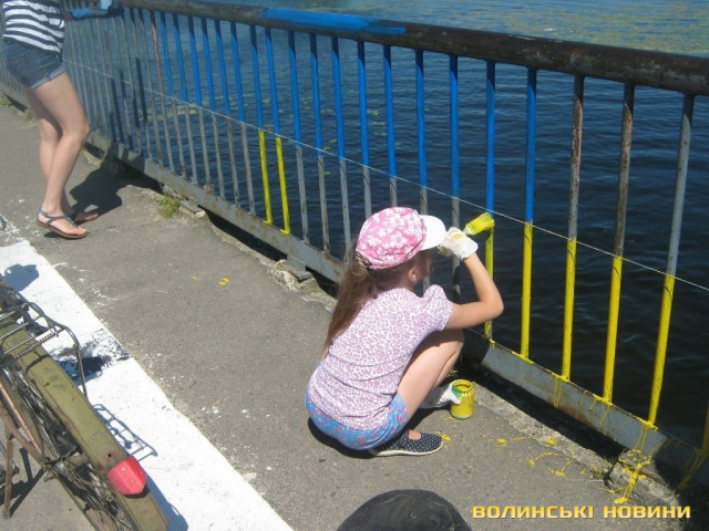 О 10 годині ранку біля пішохідного мосту з усім необхідним для фарбування реманентом зібралися шестеро юних ковельчан, переважно десятикласників. Серед них - вихованці міської гімназії, НВК №13 та НВК «ЗОШ №11-ліцей». Вони прийшли завершити патріотичну акцію, яку розпочали ще 27 червня. З їх слів, хочуть таким чином підняти патріотичний дух як однолітків, так і дорослого населення свого рідного міста, адже прогулюватися по оновленому синьо-жовтому пішохідному мосту - вдвічі приємніше.
