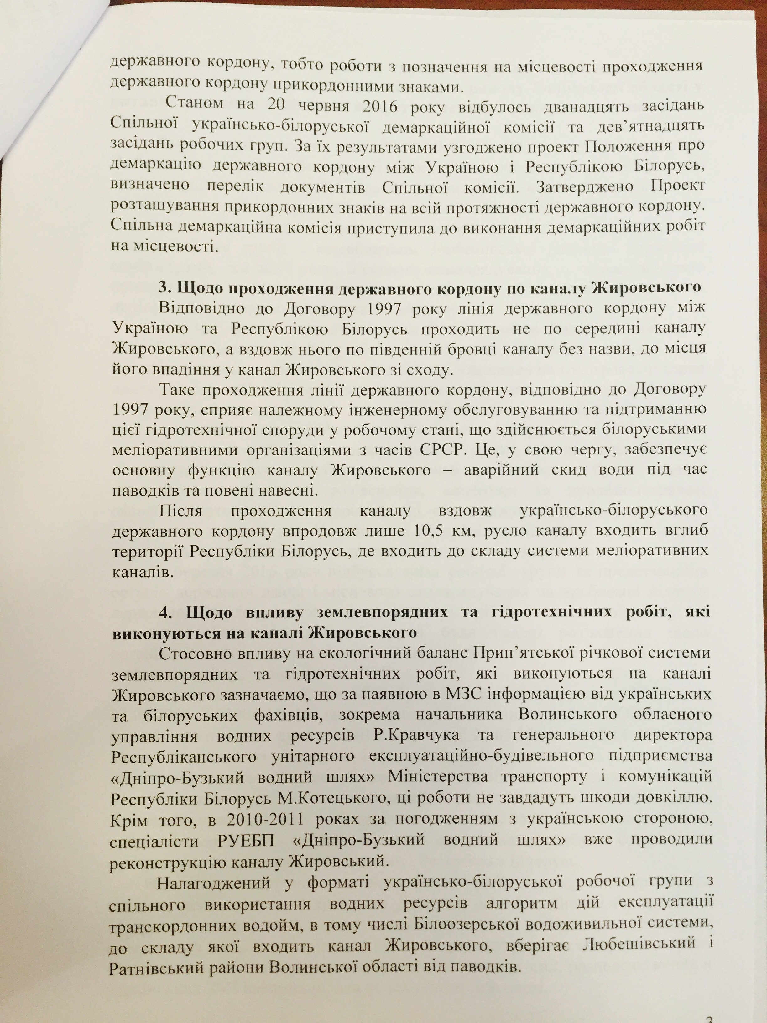 Отож, у відповіді на запит, яка надійшла з Міністерства закордонних справ йдеться: «Беручи до уваги численні звернення, які надходять до МЗС стосовно проведення демаркаційних робіт на українсько-білоруському кордоні, МЗС готове організувати та провести для заінтересованих народних депутатів міжвідомчу нараду за участю ЦОВВ, які причетні до процесу демаркації, що надасть можливість отримати достовірну та повну інформацію з цього питання», – повідомлено у відповіді міністерства.
