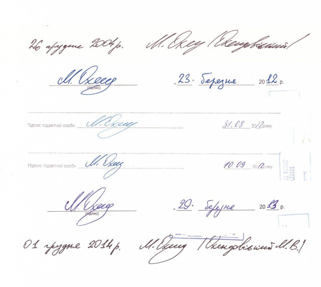 Національне антикорупційне бюро України у справі "чорної бухгалтерії" Партії регіонів оприлюднило результативну частину почеркознавчої експертизи "амбарної книги" із підписами, які, як зазначається, належать голові Центральної виборчої комісії Михайлу Охендовському, передає УНН з посиланням на прес-службу відомства.