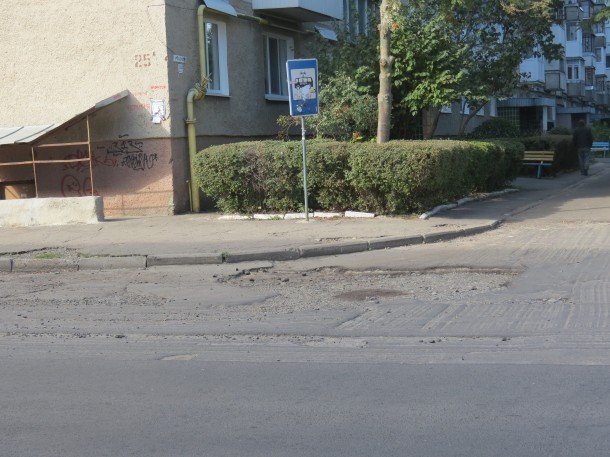 Шкода, що не доремонтували дорогу. А магазинчик хлібний це чудово, хоч і на тротуарі стоїть. Можна обійти, раніше тут автівки стояли. Щодо мамочок з візками, це окрема тема. Їм хоч два тротуари облаштуй, вони всеодно за своїми правилами їздять, думаютъ про свої зручності, а не про дитину. Не розумію прогулянок вздовж дороги, де вихлопні гази на рівні візочка. До поліклініки можна йти дворами по Ветеранів ближче до парку, можна обійти по Соборності, де тротуар далі від проїзджої частини. Ще мене обурює, коли по велодоріжках гуляють, одна дитина у візочку, а друга ганяє десь поруч і не знаєш з якого боку вискочить.
