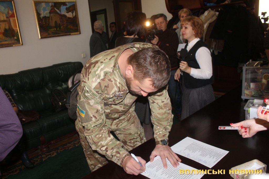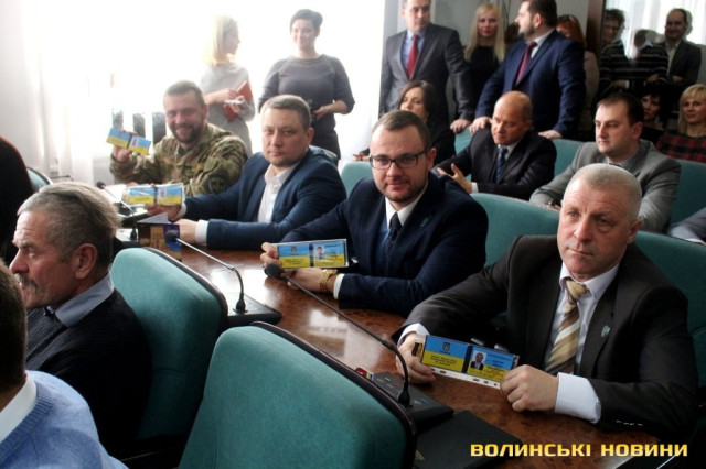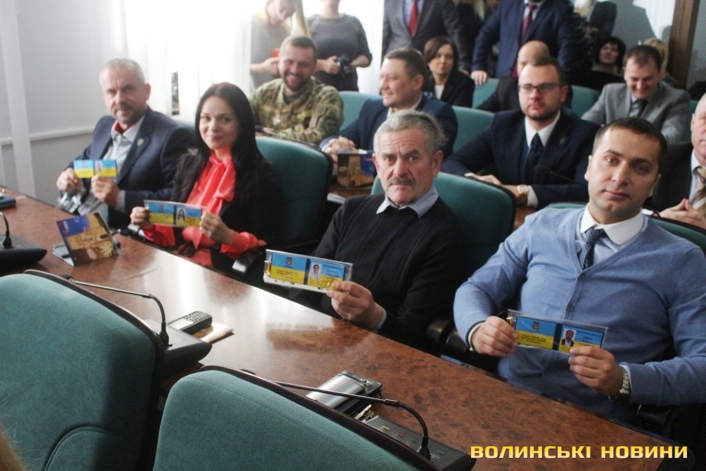 Після того, як голова міської виборчої комісії зачитав результати виборів депутатів Луцької міської ради, що відбулися 25 жовтня, обранцям міської громади вручили посвідчення депутатів.