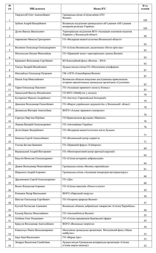 Новообраний склад Громадської ради при Волинській ОДА. ІМЕНА