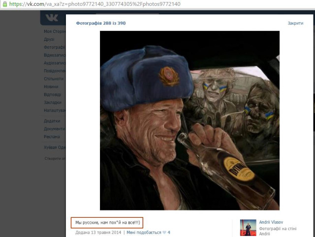 "А ось ще один обожнювач Путіна, який спокійно працює в поліції Одеси. Андрій Власов. Раніше він працював моряком і ніяк не приховував своїх антиукраїнських поглядів. Він бував у Москві, про що свідчать численні фото звідти. Одна з цитат представника патрульної поліції звучить так: "Мы русские, нам пох*й на все!", – зазначив активіст.
