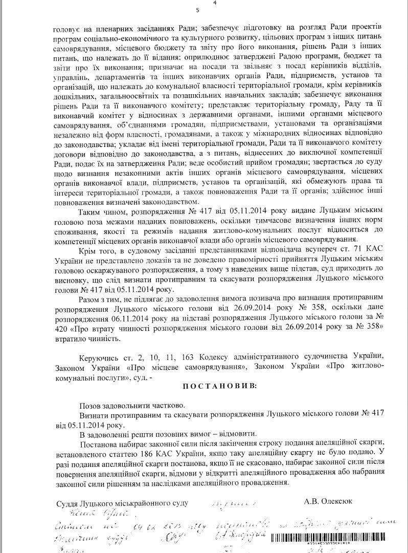 Та все ж позивачу Андрія Осіпову вдалося переконати суд та довести, що міський голова Микола Романюк не мав повноважень для того, аби приймати відповідні розпорядження та регулювати надання житлово-комунальних послуг взагалі.