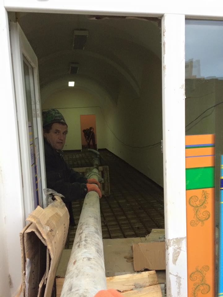 Так, сьогодні, 9 листопада депутат міської ради Павло Данильчук опублікував фото, як ремонтники заливають бетон в приміщенні монастиря бернардинів (пам’ятка національного значення, яка перебуває під охороною держави).