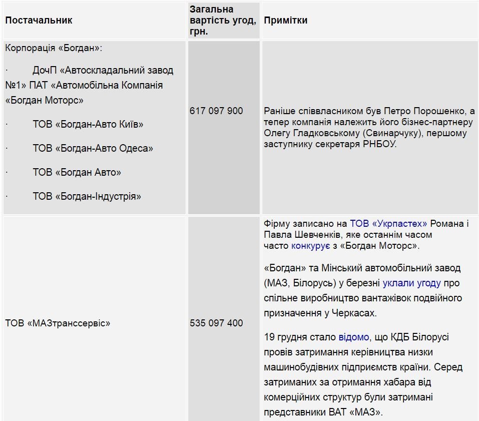 Лідером серед них стала корпорація «Богдан» із підрядами на 617,10 млн грн.