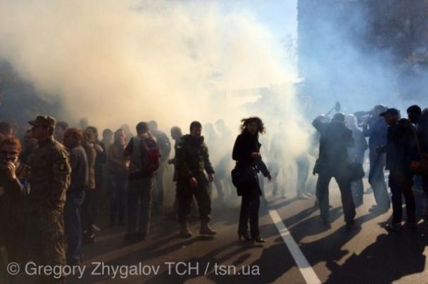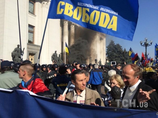 Кидати димові шашки почати після криків з натовпу "ОУН-УПА" - офіційне визнання!" - , повідомляє ТСН.