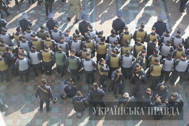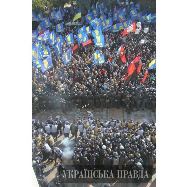 Міліція сформувала кілька рядів кордону між пікетувальниками та парламентом. Повідомляється, що постраждалих поки немає, хоча димові шашки летять в правоохоронців, затриманих поки також немає.