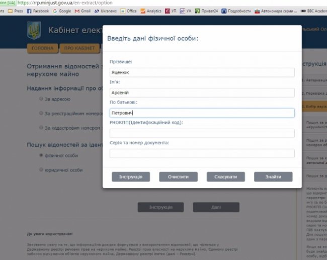 Водночас, в розміщеній на сайті Мін'юсту системі розкриття інформації з Держреєстру журналістам вдалося знайти дані тільки про одного з перших осіб держави.