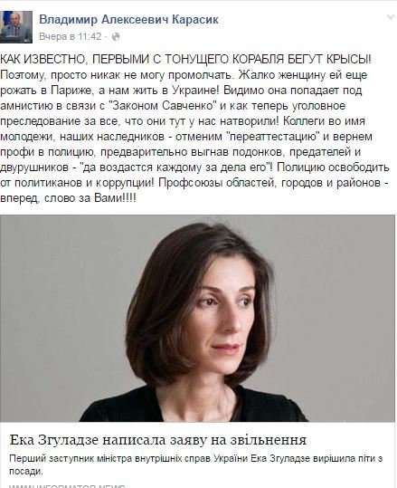 "Це РЕВАНШ тих хто втратив годівниці, — пише Валентина Коваль. — Тих, хто катував в камерах, хто фальсифікував матеріали кримінальних справ, хто за зарплату в 2000 грн, придбавав авто за 100000 у.о".