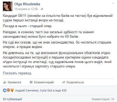 "Моя думка - самі младореформатори, які пролізли в міністерства на хвилі Майдану, своєю амбітною криворукістю і непрофесіоналізмом роблять все, щоб повернути на місця "міцних господарників", а потім намагаються піаритися на власних ляпах, - пише на своїй сторінці в ФБ волонтер Олександр Сурков, глава волонтерської організації Vis Pacem. – Справа в тому, що юридичне оформлення переатестації ментів і чищення поліції було виконано настільки криво, що його хіба що лінивий не став би торпедувати, тобто винні в події першою чергою ті, хто готували і виконували в МВС документи . Решта – спроба робити пафосну картинку на камери при проср*ній справі. Адвокат Авакова спрацював у ситуації досить професійно, викидаючи по черзі клопотання, одне прикольніше від іншого. На третьому "козирі" суд відклали".