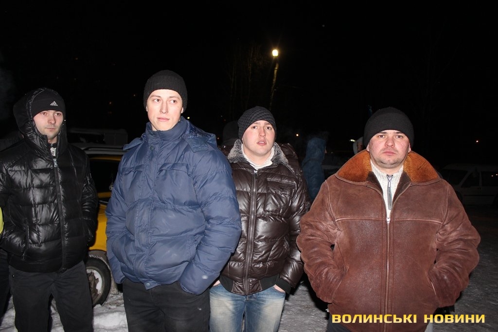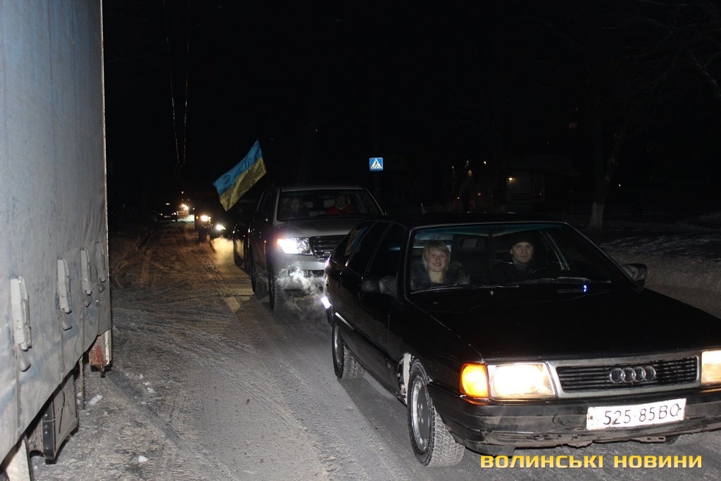 Чимало активістів автомайдану зібрались для автопробігу містом у знак протесту проти кривавих дій силовиків у Києві та на підтримку активістів, які «стережуть» ВВшників у Луцьку.