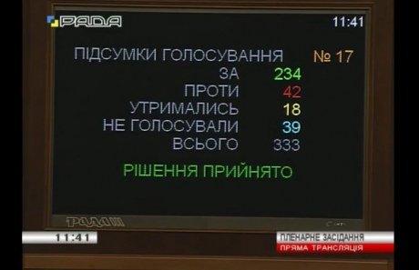 Рішення бприйняли після невеликої перерви, оголошеної спікером ВР Володимиром Гройсманом, після того, як депутати кілька разів провалювали голосування.