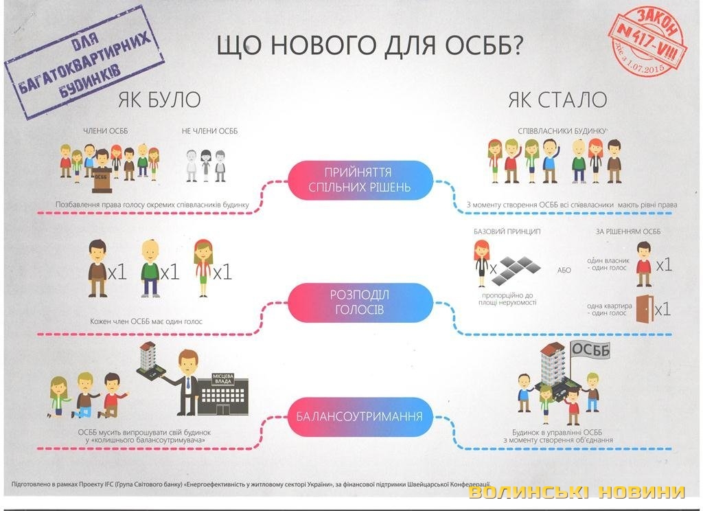 Зрештою, реформування у сфері житлово-експлуатаційних послуг в країні назріла давно. У Луцьку, як і в усій країні набирає обертів рух ОСББ. Однак, віднедавна держава вирішила підштовхнути українців до того, аби мешканці багатоквартирних будинків не уникали вирішення проблем своїх будинків, адже вони є співвласниками.