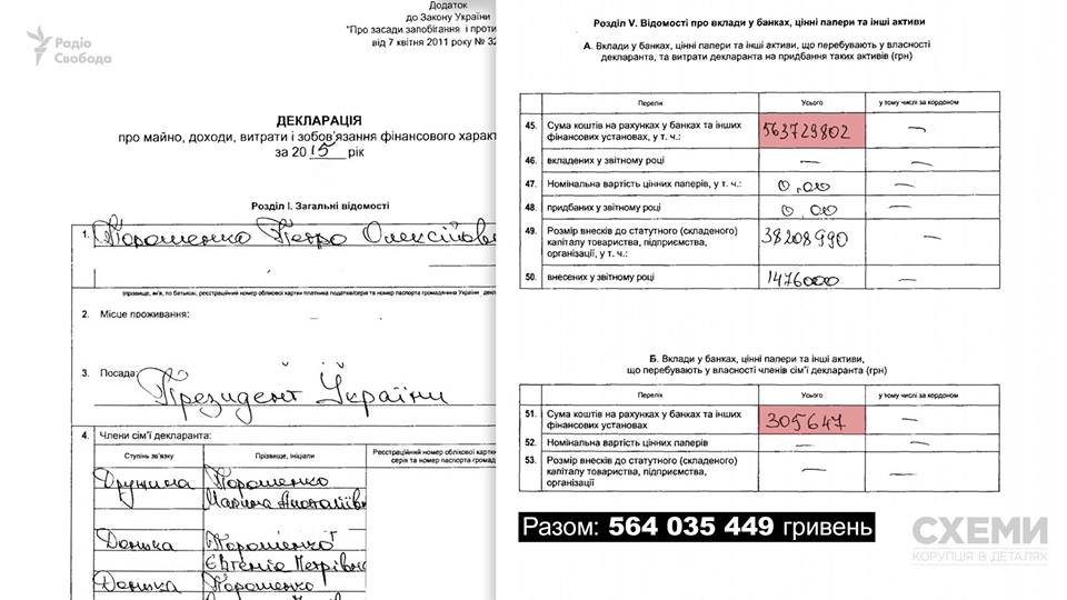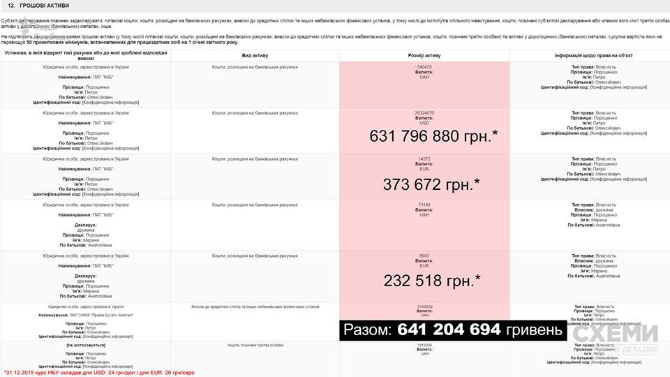 В АП зазначили, що 17 березня 2016 року Порошенко отримав довідку від Міжнародного інвестиційного банку, згідно з якою, залишок коштів на рахунках станом на 01.01.2016 р. складав 563 729 802,31 гривень.