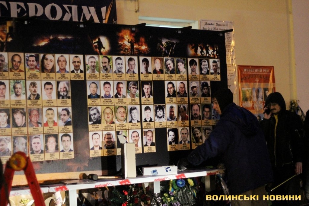 Поки у Луцьку не зведуть пам’ятника загиблим волинянам на Майдані та під час війни на сході, стенд пам’яті Небесної Сотні з Театрального майдану не забиратимуть.