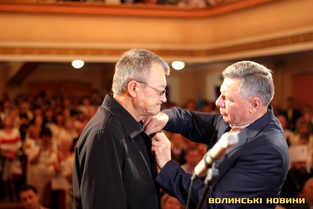 Відзнаку почесного громадянина міста Луцька для полеглого під час революційних подій у Києві Василя Мойсея прийняв його батько Михайло Іванович.