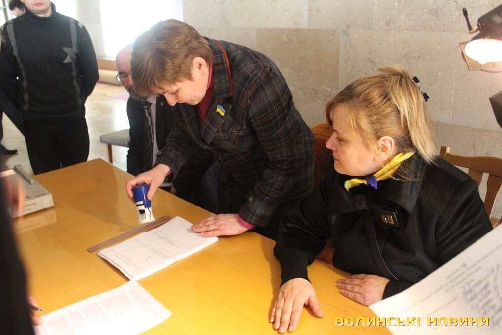 Голова лічильної комісії Володимир Навроцький повідомив депутатів: «Ми підготували кабіни для таємного голосування, скриньки, опечатали, обрали праве фойє другого поверху приміщення, є дві кабіни для голосування, одна урна. Бюлетені у кількості 80 штук підготовлені – це кількість фактично обраних депутатів.