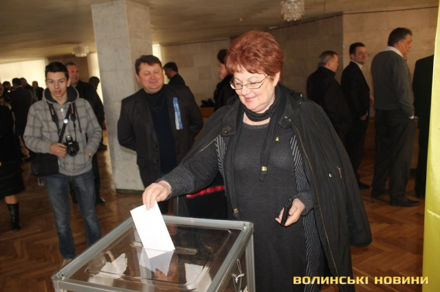У бюлетені вказано: «Про задоволення заяви Володимира Войтовича щодо звільнення з посади голови обласної ради». Під час голосування ходять представники "Правого Сектору" та наголушують депутатам, що потрібно активніше голосувати.