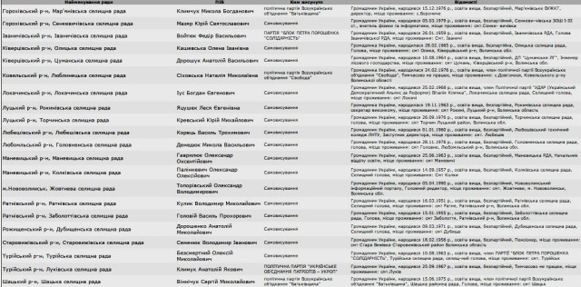 Окрім цього, повідомляються імена 351 обраних голів сільських рад (із 359) Волинської області.