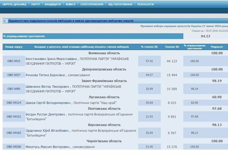 Такі дані опубліковані на офіційному сайті Центральної виборчої комісії.