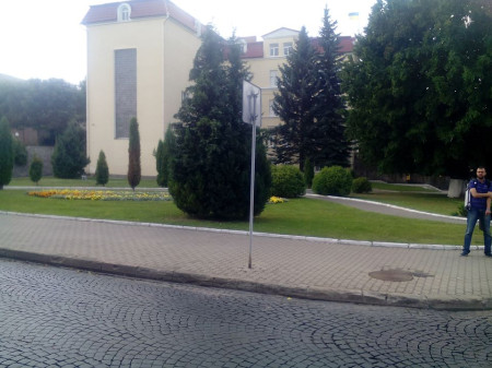 У день приїзду Авакова та Яценюка біля Луцької міськради зник дорожній знак обмеження руху транспорту, який у народі називають «цеглинкою».