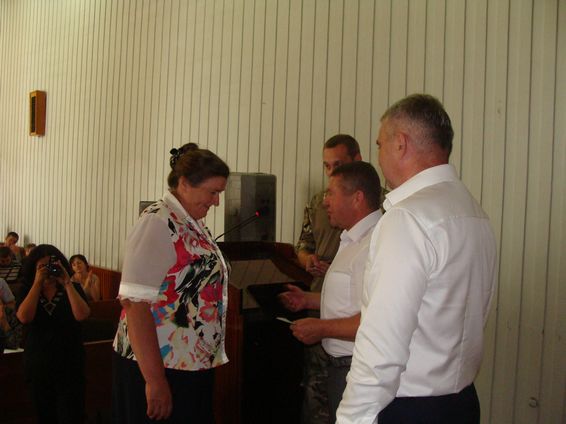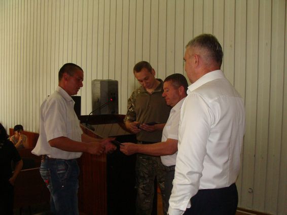 До мужніх захисників України, своїх земляків звернувся голова райдержадміністрації Віктор Козак, який подякував за сміливість і героїзм, проявлені ними при захисті територіальної цілісності та незалежності України. «Сьогодні посвідчення отримали справжні бійці, істинні захисники України", - зазначив Віктор Козак.