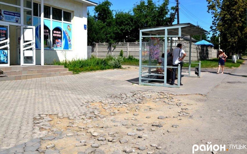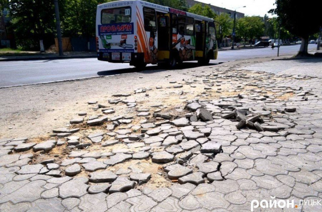 Поблизу маршрутної зупинки по проспекту Відродження, 31, руйнується свіжопокладена бруківка. Про це повідомляє Район.Луцьк.
