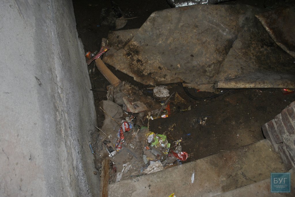Вода, фекалії, жаби, вужі… Так описують життя у будинку №24 на 15-му мікрорайоні його мешканці. Підвальне приміщення на разі сухе, однак, люди говорять, що три тижні тому тут все плавало. Більш як 10 років, особливо в дощову погоду, в підвалі постійно піднімається вода. Там нічого не зберігається, двері згнили. А коли останнього разу прорвала каналізаційна труба, від важкого повітря, що від підвалу піднялося до самого 5-го поверху, кажуть жителі, можна було втратити свідомість.