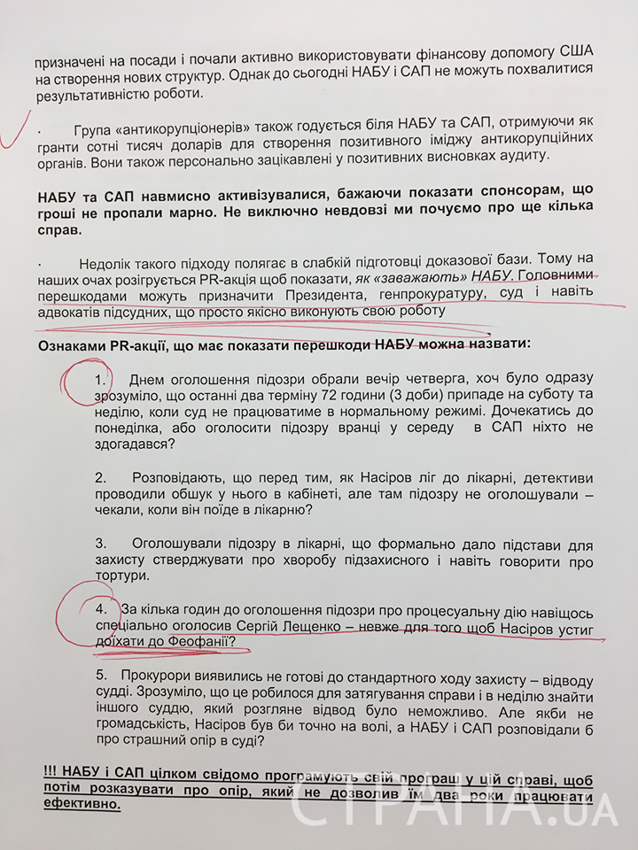 Згідно із запланованими положеннями, провладним депутатам та блогерам потрібно заявляти, що НАБУ і САП спеціально програмують свій програш у справі Насірова, щоб звинуватити владу у тиску на них, тим самим виправдавши неефективну роботу.