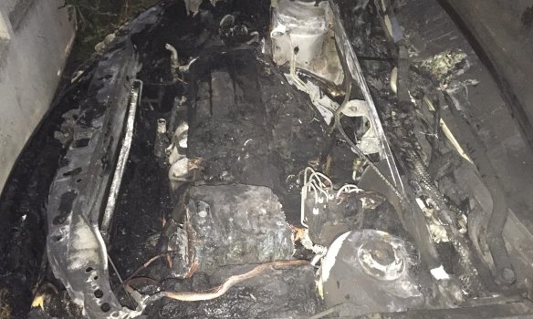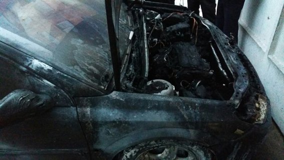 Прибулі на місце інциденту рятувальники загасили пожежу. Згідно з попередньою інформацією, причиною пожежі є підпал. Вогнем пошкоджено моторний відсік та капот автомобіля.
