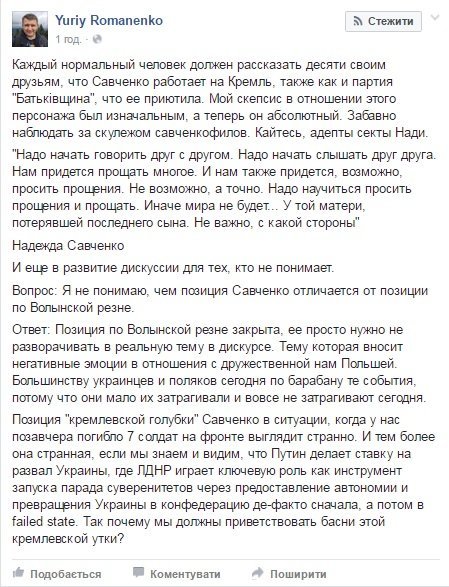 Інформатор зібрав підбірку дописів-реакцій українців у соціальних мережах. Користувачі розкритикували заяву Надії Савченко.
