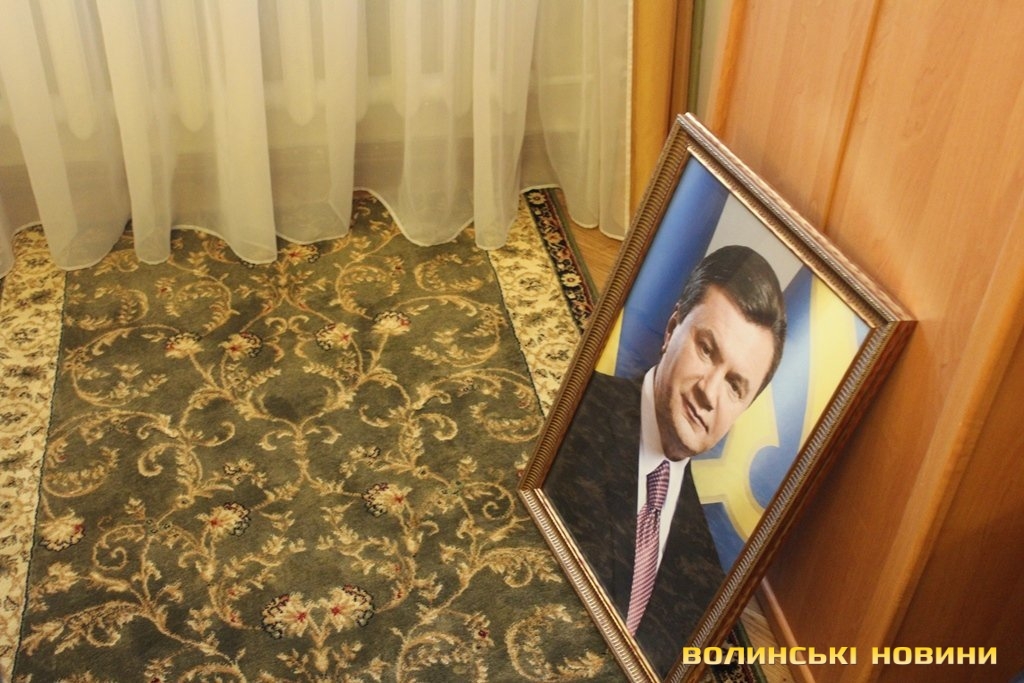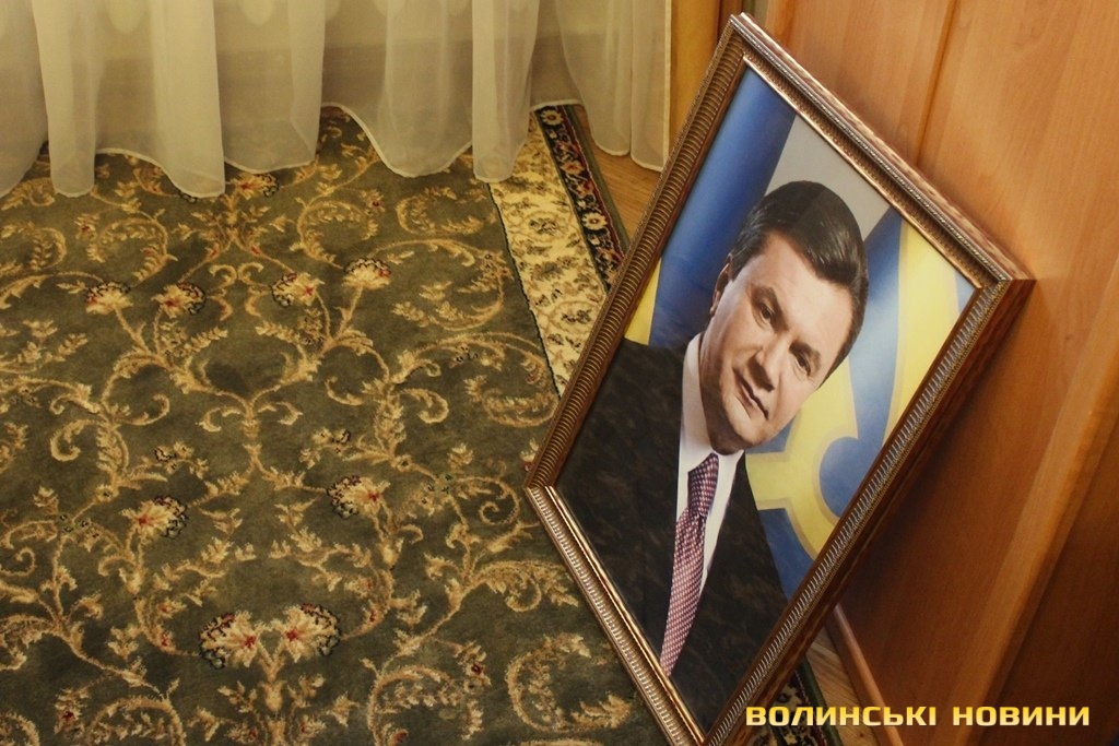 Портрети втікача-президента вже не прикрашають стіни кабінетів у Волиньраді.