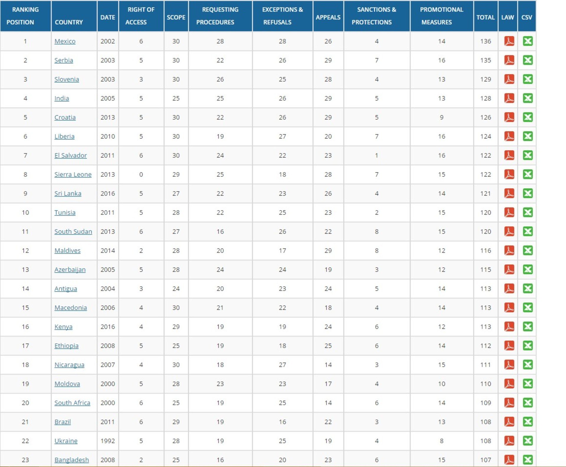 Під час складання рейтингу Access Info Europe та Centre for Law and Democracy оцінюють виключно існуючі норми законодавства в тій чи іншій країні.