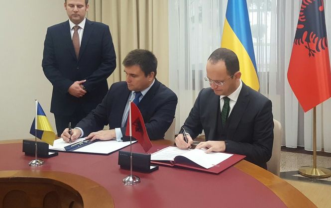 Глави зовнішньополітичних відомств України і Албанії Павло Клімкін та Дитмир Бушаті підписали угоду про скасування віз між двома країнами.
