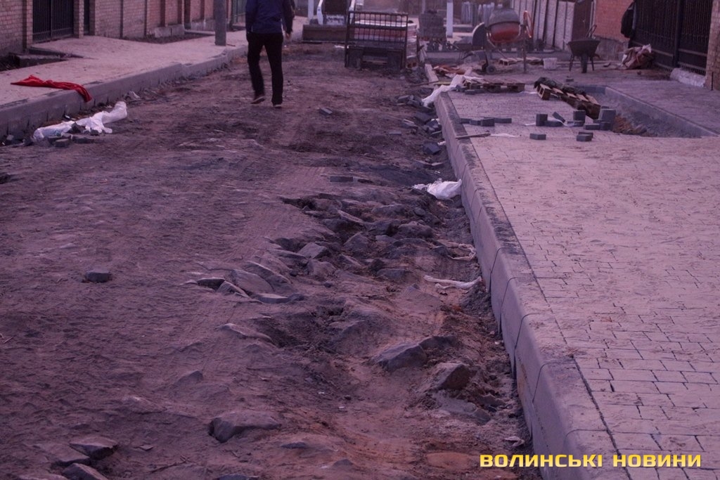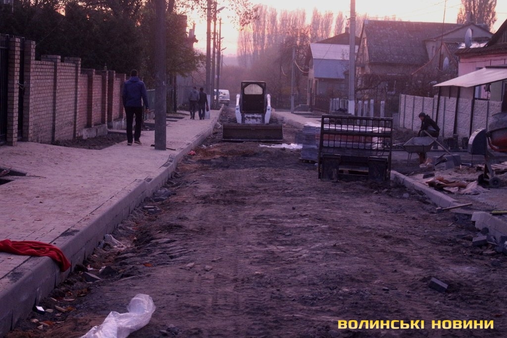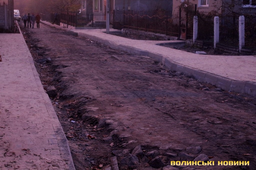 А вже наприкінці жовтня на вулиці розпочалися ремонтні роботи. Директор департаменту ЖКГ Іван Кубіцький пояснив, що на вулиці обабіч облаштовують тротуари, а сам камінь, яким було вимощено дорогу, піднімають, укладають основу, а потім його заново вкладатимуть.