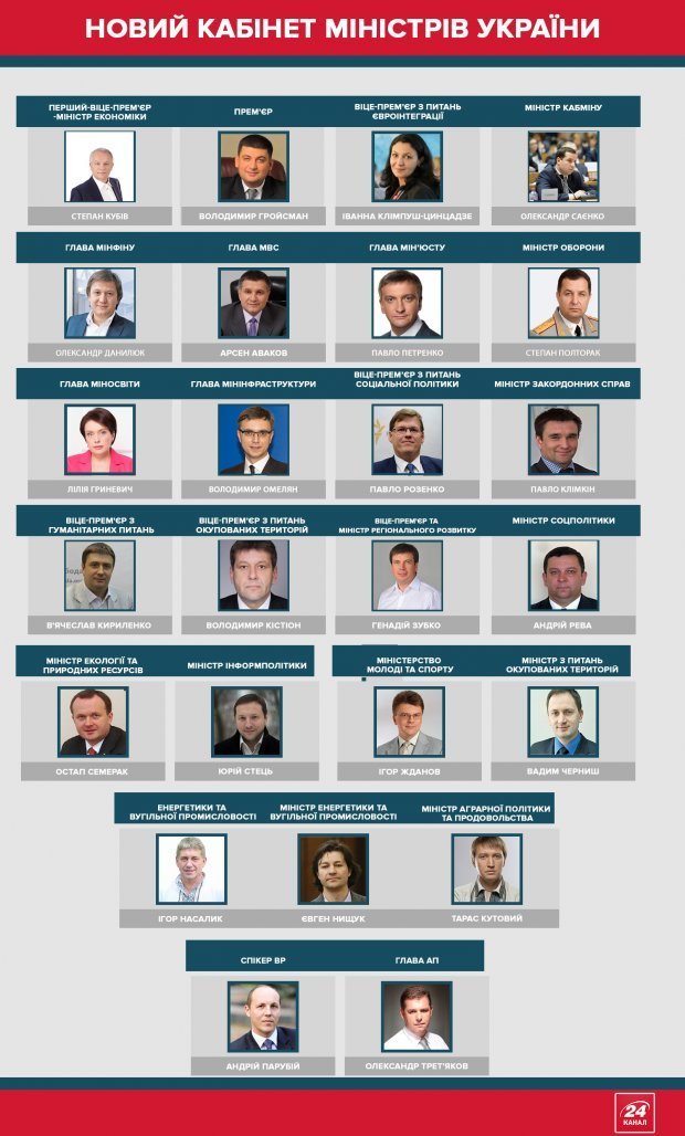 Напередодні голосування прем’єр-міністр Володимир Гройсман зачитав список кандидатів на крісла в уряді: