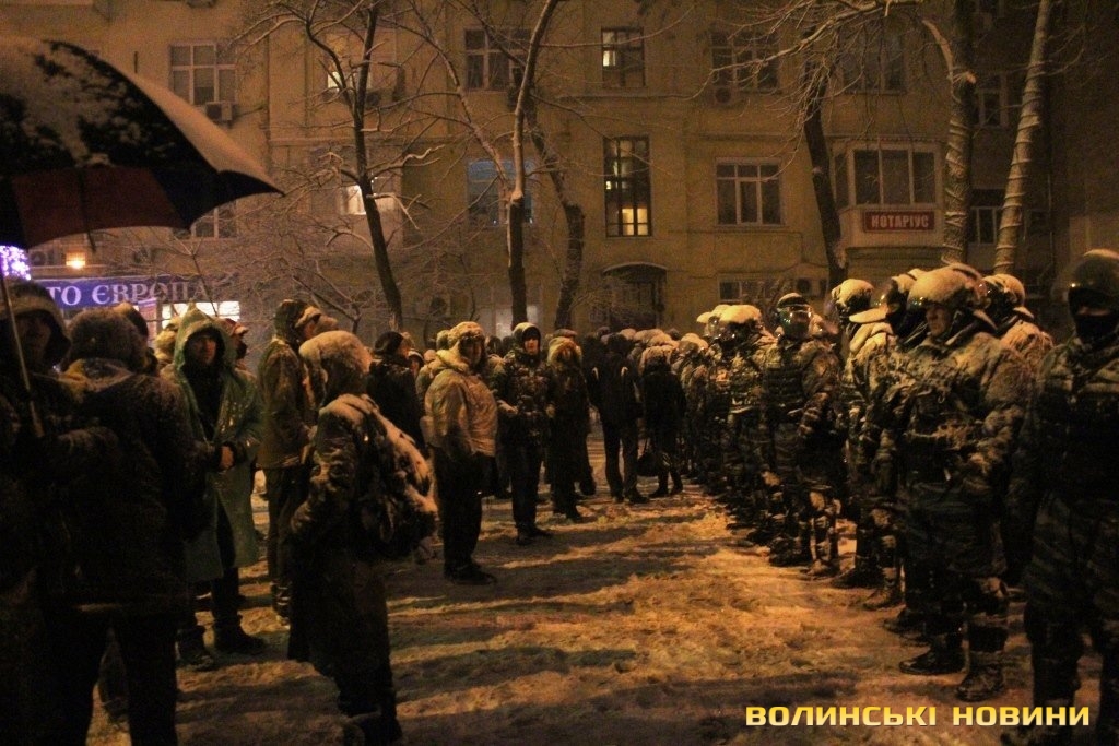 Так, сьогодні, 9 грудня, ввечері, на перетині вулиць Шовковичної та Інтитутської зайняли позиції бійці «Беркуту», заблокувавши прохід вулицею. Таким чином, дехто з мешканців мікрорайону не міг потрапити до своїх осель. Пересічні кияни намагалися вмовляти бійців спецпідрозділу пропустити їх, однак ті не реагували на прохання та звернення. Невдовзі з Майдану Незалежності підійшла колона демонстрантів, які утворили два живих ланцюги навпроти «беркутівців». Демонстранти вигукували гасла «Міліція – з народом», «Зека - геть» та «Слава Україні» й співали стрілецькі пісні. У якийсь момент здавалося, що може дійти до сутичок між демонстрантами та правоохоронцями, однак євромайданівці не виявляли агресії проти бійців спецпідрозділу.