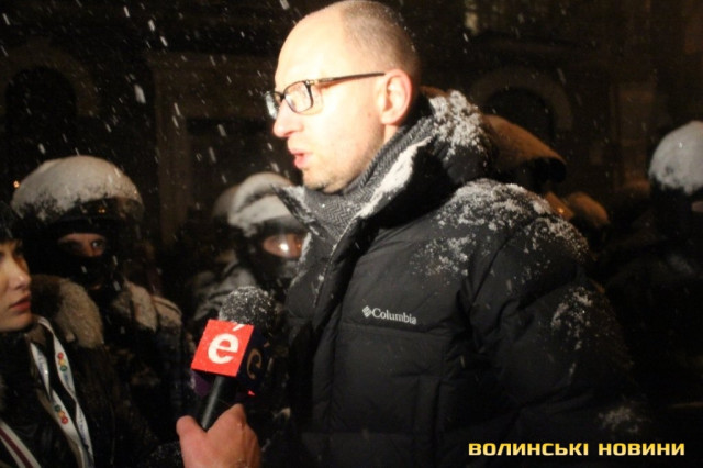 «Відбувається наступне: так Віктор Янукович вирішив розпочати круглий стіл - пригнав тисячі міліції, «Беркуту», внутрішніх військ та хоче знести мирну демонстрацію. Наші демонстранти мають чітку вказівку – ніякого застосування сили, ми не допустимо жодної провокації, зараз ми ходимо і звертаємось до працівників міліції «будете бити людей – будете відповідати по закону». Поки що ситуація контролюється. Якщо вони знесуть одні палатки, ми поставимо нові, якщо вони знесуть одну лінію, ми побудуємо нову. Янукович повинен розуміти, що внутрішніми військами не вирішується політично-економічна криза. Десять тисяч «Беркуту» не можуть переламати мільйон. Зараз те, що ми заблокували, заблокували й вони, це тактика війни, ми кордон – вони знову кордон, подивимося, у кого буде більше сил», - прокоментував ситуацію один з лідерів опозиції Арсеній Яценюк.