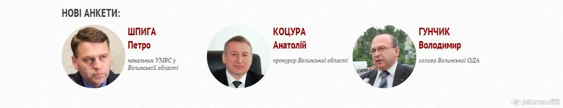 Наразі на сайті додані три анкети. Щоправда, зазначений Анатолій Коцура вже не обіймає посаду прокурора області.