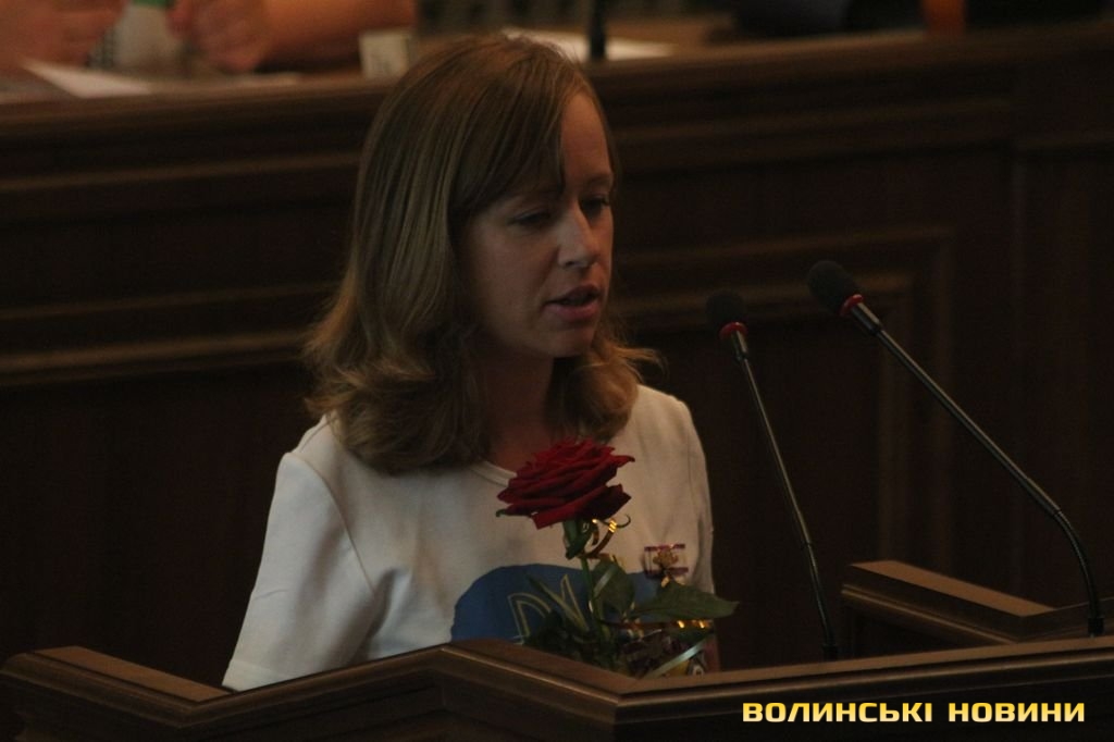 Спортсменка подякувала за відзнаку та зауважила, що приїхала на Волинь підтримати свого наставника – директора організації «Інваспорт» Володимира Гащина, якого хочуть змістити з посади. Жінка зауважила, що у випадку, якщо його відсторонять від управління, то вона, як і чимало інших спортсменів, підуть тренуватись у інші області – мовляв, пропозиції вже є.