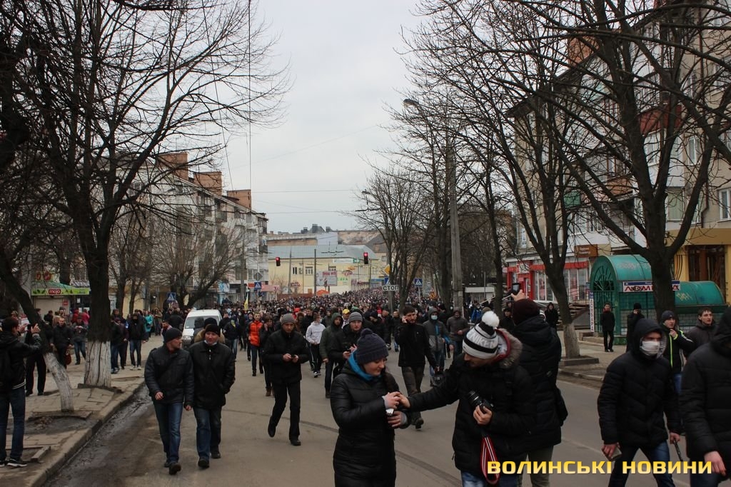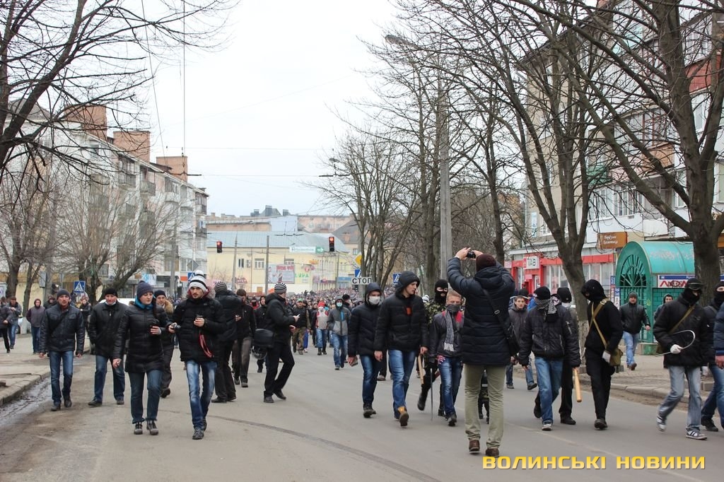 Хода розпочалась стихійно, від приміщення захопленої прокуратури Волині. За станом на 14:40 мітингувальники прийшли до СБУ. Радикально налаштованих зупинили представники Народної самооборони в місті.На місці натовп людей зустріли керівники «Правого сектору» та наказали зупинитися.