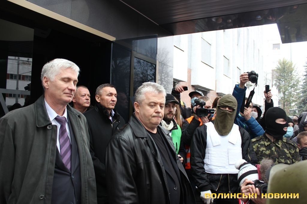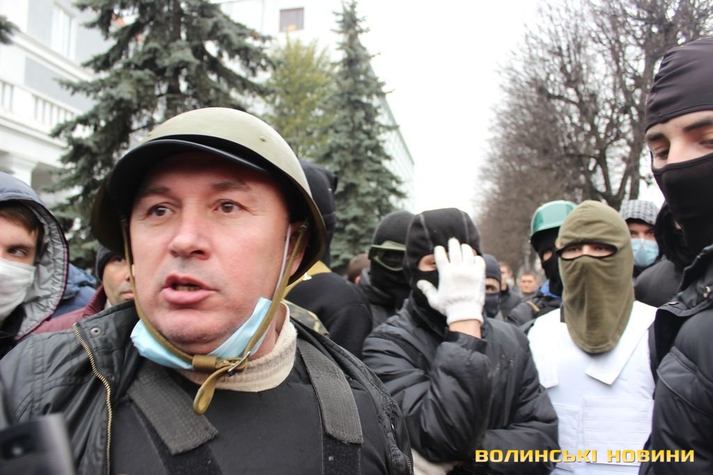 Далі керівник волинського «Правого сектору» Павло Данильчук виступив перед мітингувальниками зі словами, що СБУ не причетна до свавілля, яке відбувається на Волині, усе, мовляв, - на совісті МВС та прокуратури.«По СБУ питань немає, бо зараз нічого не відбувається по Волині. Це я вам насправді кажу».