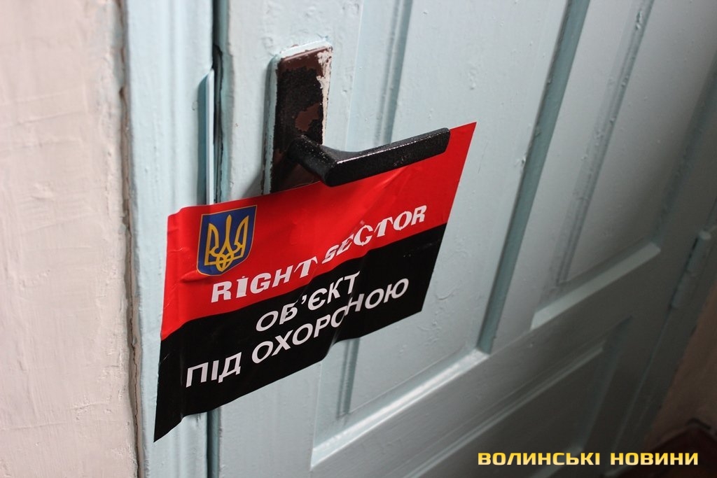 Коли кабінет покинули всі візитери та працівники відомства, активіст Правого сектору залишив своєрідну «печатку» на замку.