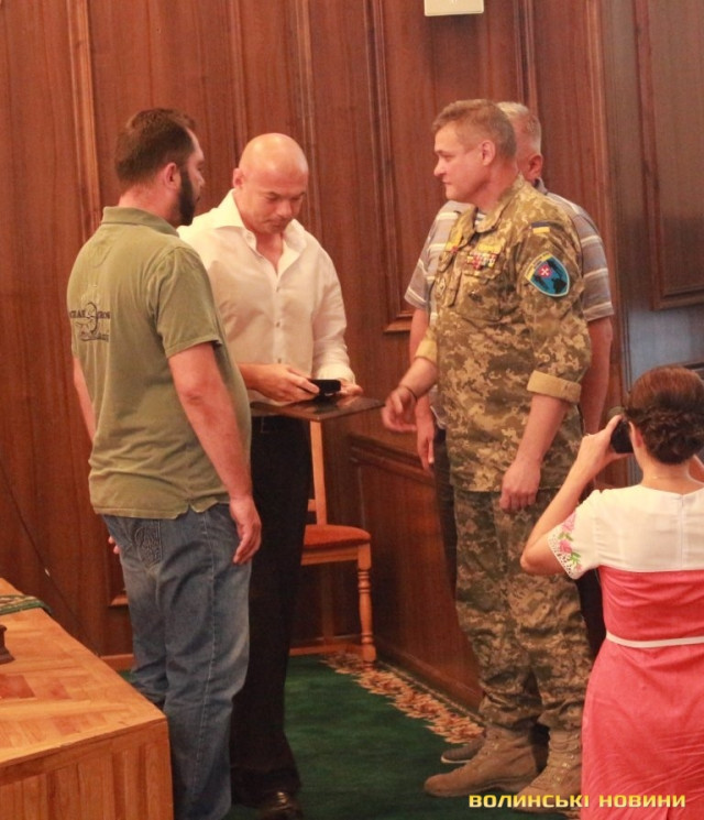 По тому, представник обласної спілки воїнів АТО Олександр Серватович зачитав наказ голови спілки, відповідно до якого Ігоря Палицю за особисту мужність і героїзм, підтримку миру на території Одеської області, надання волонтерської допомоги, нагроджено орденом «Золотий тризуб» І ступеня та званням «Народний герой Волині».Сам Ігор Палиця подякував членам спілки за довіру та оцінку.