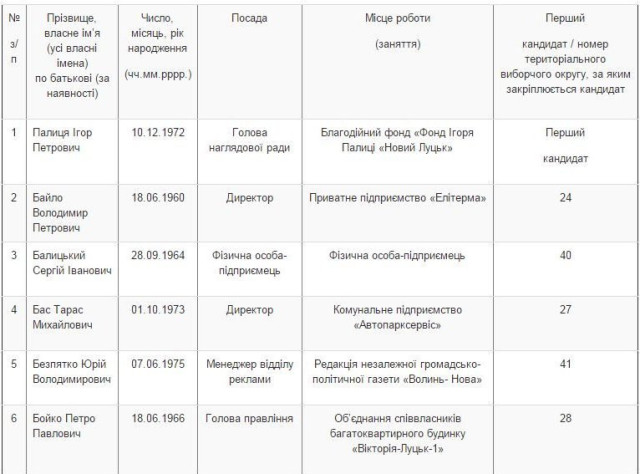 Оприлюднили список кандидатів у депутати Луцької міської ради на вибори 25 жовтня, висунутих Луцькою міською організацією політичної партії «Українське об’єднання патріотів – «УКРОП» у багатомандатному виборчому окрузі.