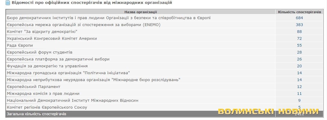 Загальна кількість зареєстрованих спостерігачів – 1421.ЧИТАТИ ЩЕ: як голосували волиняни